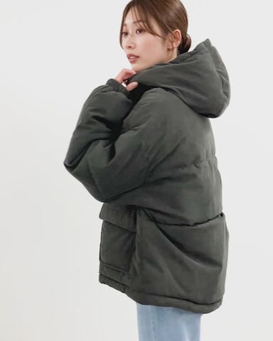 ・ボリューム感のあるオーバーサイズとトレンドのコーデュロイ素材が着映えて暖かい、ダブルポケット・中綿ジャケット。