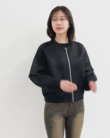 ・大人のカジュアルミックス:あえてロゴTシャツやワイドパンツに合わせれば、シアーな素材感が際立つ、こなれた都会的なカジュアルスタイルが完成します。