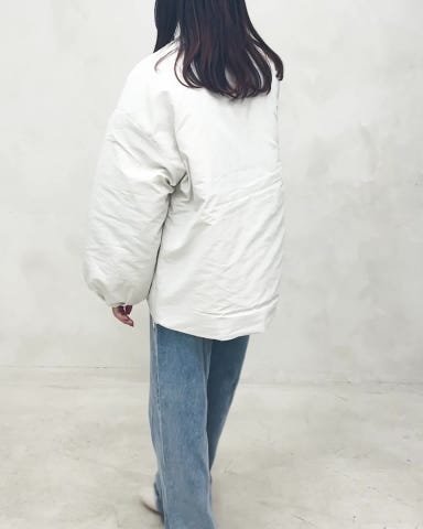 大人めサイドファスナーノーカラー中綿ブルゾン