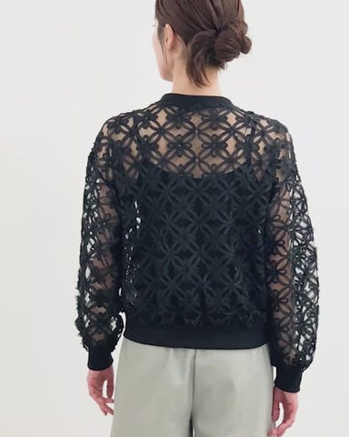フラワー刺繍シアーブルゾン