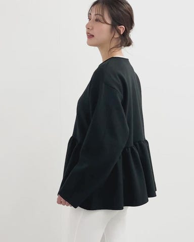 ペプラムシルエットが女性らしい印象を与えるジャケット。