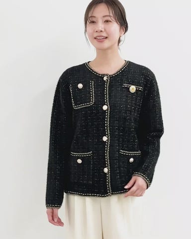 ・洗練されたツイード風デザイン:襟元、前立て、ポケット、ゴールドのステッチが全体の印象を引き締め、高級感のある佇まいに仕上げました。