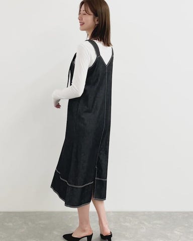 ・程よくゆとりのあるシルエットでラフに着られるデニムジャンパースカート。