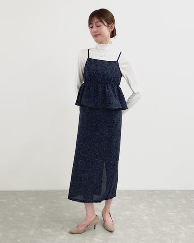 ・胸下位置に切り替えたペプラムデザインが印象的な一枚。