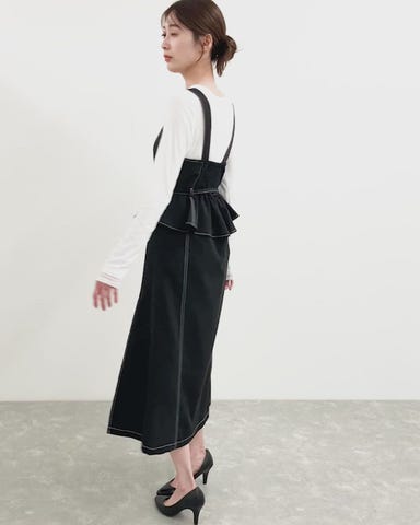 ・配色ステッチがアクセントになったジャンパースカート。