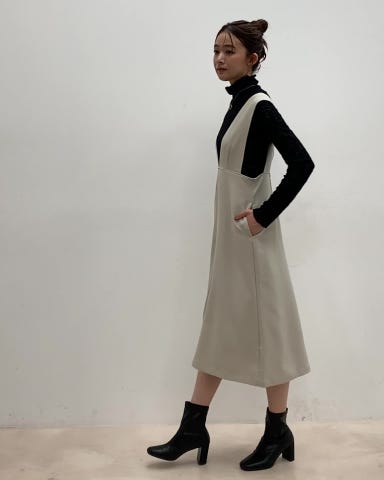 ジャンスカワンピース。トレンド感のある深Vネックが