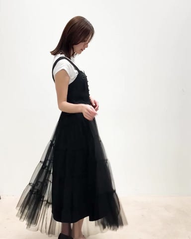 スカート部分がティアードになっているので、ボリューム感がありつつ、ふわっとしたシルエットがかわいいポイント。