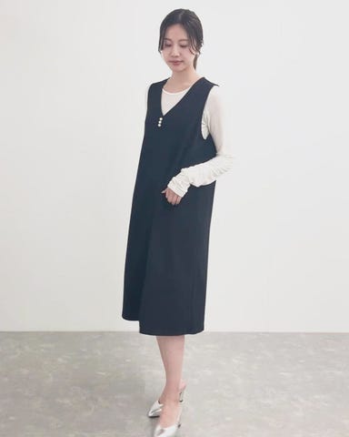 フロントに並ぶパールが女性らしい印象を与えるジャンパースカート。