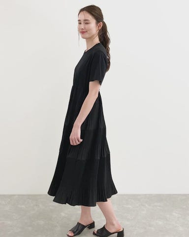 スカート部分は消しプリーツのティアード素材で、表情のある一枚。