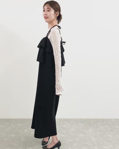フリルが目を惹く抜け感キャミワンピ