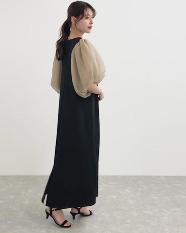 オーガンジーとチュールをふんだんに使ったボリュームのある袖が