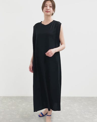 Aラインシルエットで女性らしくカジュアルになりすぎないシンプルワンピ。