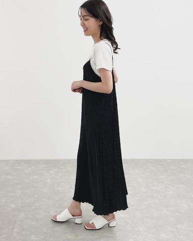 キャミワンピースはベーシックなカラバリなので、お手持ちのTシャツやブラウスとも迷わず合わせられます。