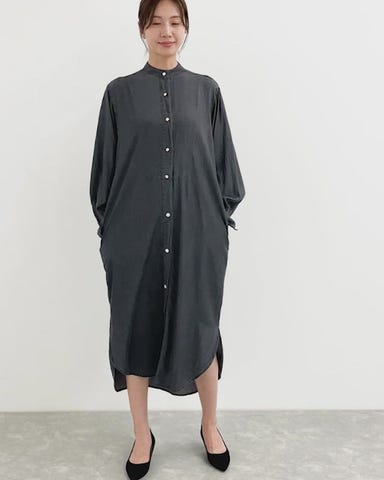 ・そのまま一枚でワンピースとして着こなすのはもちろん、前を開けて羽織としてもお使いいただけます。