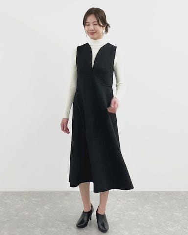 スクエアキルトキーネックワンピース