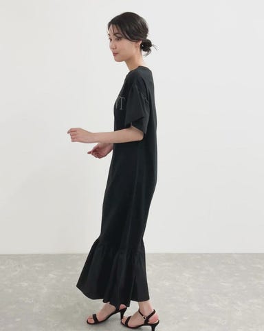 フロントのフロッキーのロゴがアクセントを加えるワンピース。