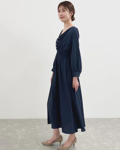 ピンタックプリーツ長袖ワンピース