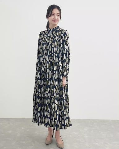 リーフ柄が爽やかな印象を与えるプリントワンピース。