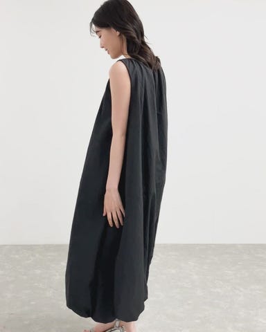 ・空気をはらむようにふんわり広がるバルーンシルエットが魅力のノースリーブワンピース。