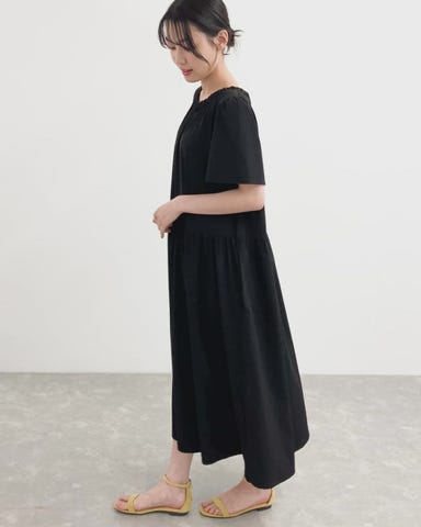 ギャザーネックウエストリボンワンピース