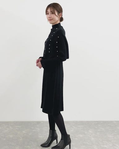 ・ショートニットには、ランダムに配されたパール装飾が施され、上品で華やかな印象を与えます。