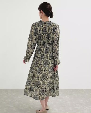 ダマスク柄プリーツワンピース