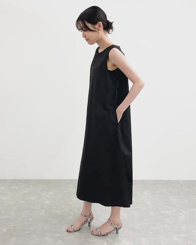 シルエットがキレイなAラインを描くノースリーブワンピース。