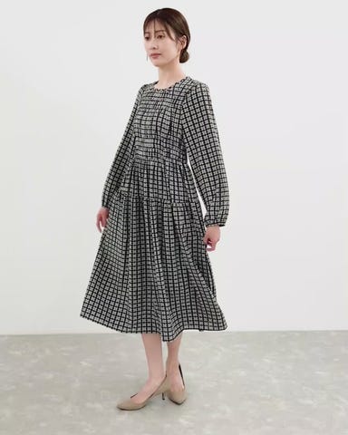 絶妙なこなれ感を演出する、レトロプリントワンピース