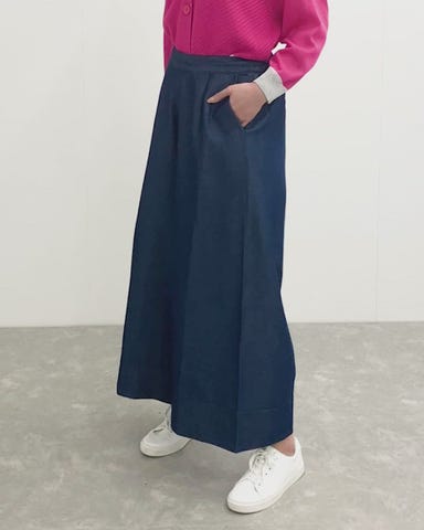 ハイウエストとワイドシルエットでスタイルアップが叶います。