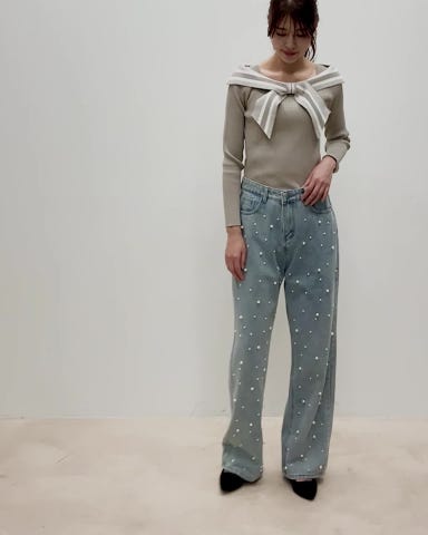 全体に散りばめられたパールがコーデのポイントになるデニムパンツです。
