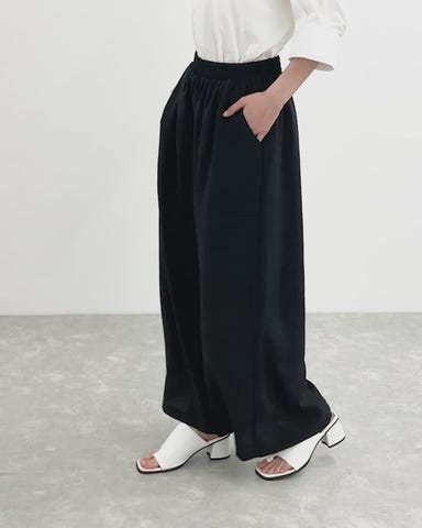 涼しげなリネンライク素材を使用したワイドパンツ。