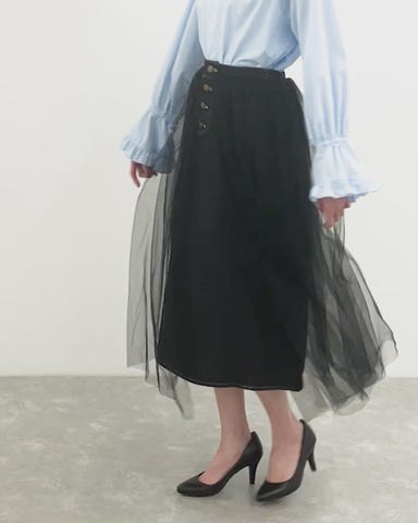 ・エアリーなボリューム感: チュールが作り出す繊細なギャザーが、歩くたびにふんわりと揺れ、ドラマティックな足元を演出します。