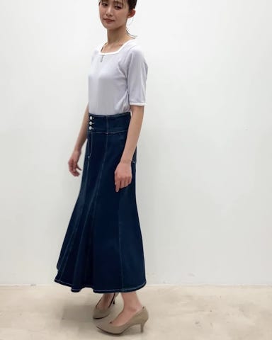マーメイドシルエットで、カジュアルなデニムを女性らしく着こなしていただけます。