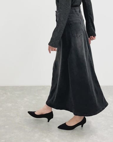 ・程よく広がるシルエットで、足さばきが良く、歩きやすいのが魅力のデニムスカート。