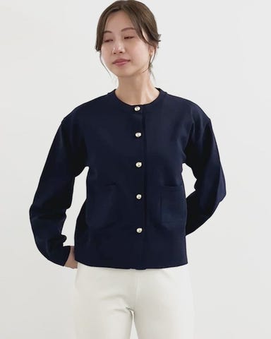 ・上品見えのするハイゲージニットに、存在感のあるゴールドボタンが映える、華やかなデザイン。