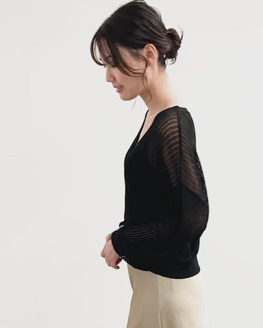 ・ラメ糸混がさりげなく煌めき、華やかな印象を与える一枚。
