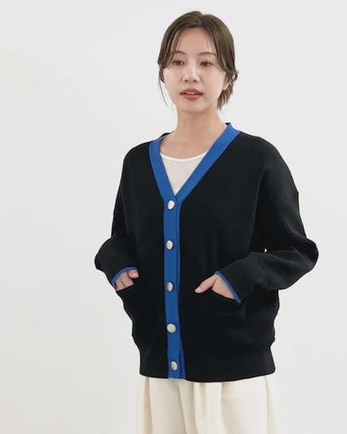・深めのVネックラインに鮮やかな配色ラインを施し、顔周りをシャープに演出。