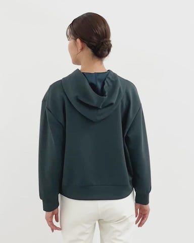 ・フード紐はグログランリボンでカジュアルになりがちなパーカーを女性らしくシフト。