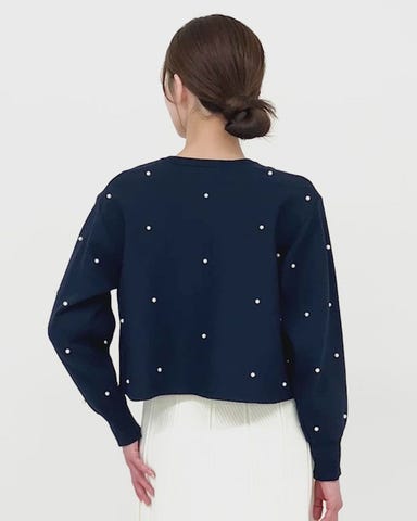 ・パールが散りばめられた女性らしいカーディガンです。