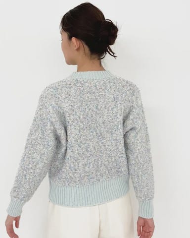・ラメ糸や衣装糸など様々な糸を編み込んだツイード調ニットジャケット。