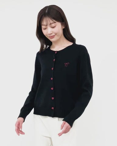 ・パールのピアスや赤のリップを添えると、カーディガンの世界観がより一層深まります。
