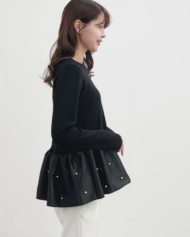 ペプラムシルエットが女性らしい着こなしを叶えるプルオーバー。
