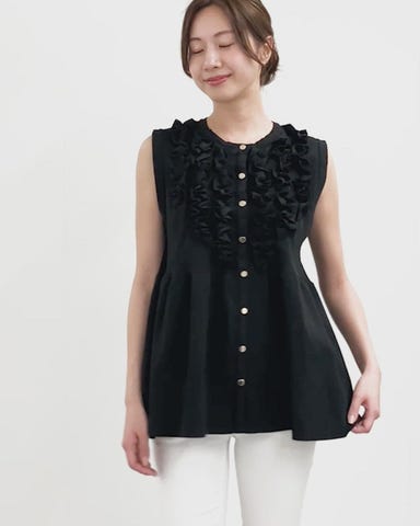 フロントにフリルやゴールドボタンを施すことで、可愛らしく女性心くすぐるデザインに。