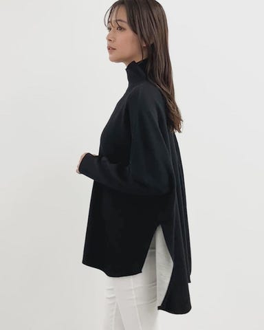 ・首元を優しく包み込むハイネックが、小顔効果と上品な雰囲気を演出。