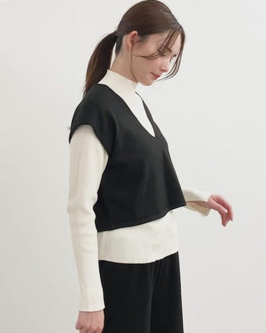 ハイゲージのニットカットソーとベストのセットアイテム。