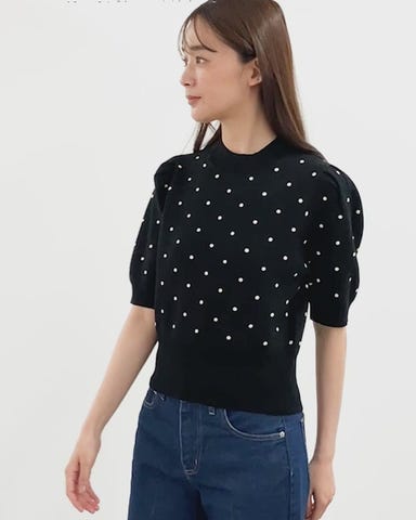 ・デニムやカットソーと合わせて、ドット柄を主役にしたカジュアルスタイルに。