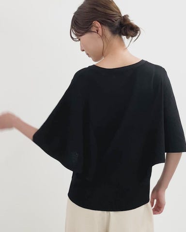 シンプルながらフレアに広がるお袖のデザインが二の腕を自然にカバーしてくれます。