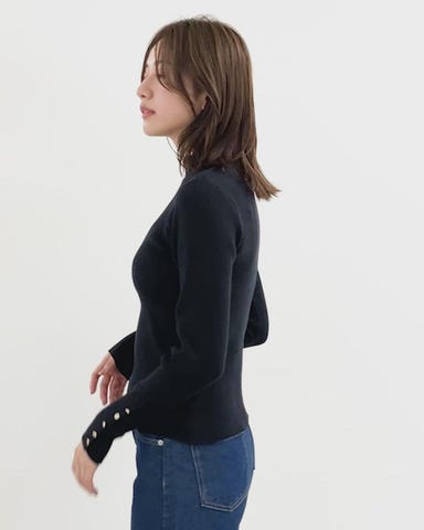 ・袖口に並んだ小さなメタルボタンのディテールが、手元に洗練されたアクセントをプラス。