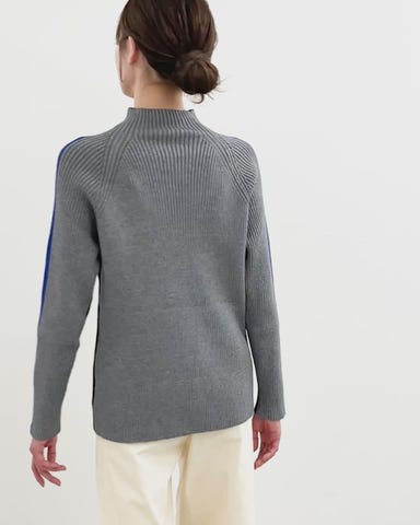 ・配色の切り替えが際立つ、きれいめなリブニットセーターです。