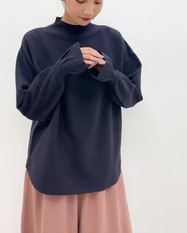 袖のタックがアクセントになった、クルーネックのプルオーバー。